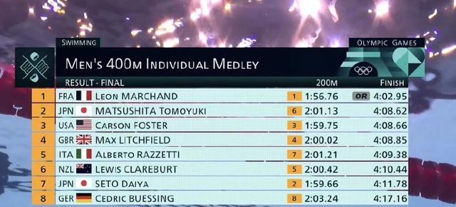 破奥运纪录!法国选手获男子400米个人混合泳金牌