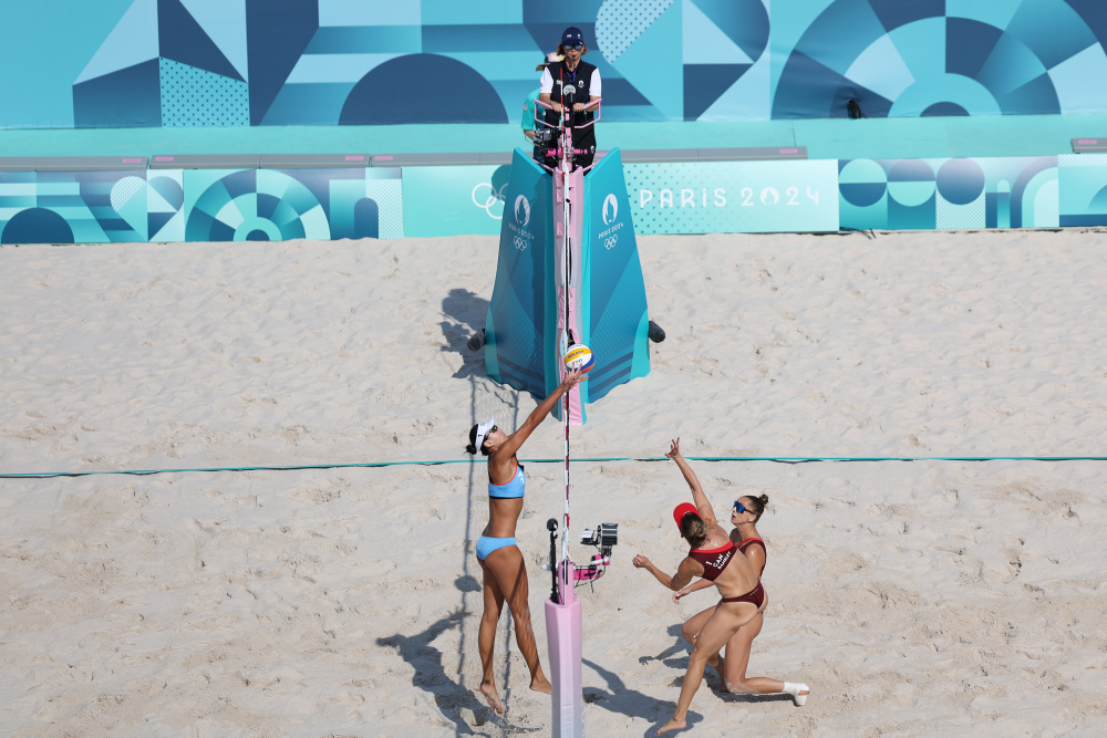 当日,在巴黎奥运会沙滩排球女子小组赛B组比赛中,中国组合薛晨/夏欣怡2比0战胜加拿大组合希瑟/布科韦茨。