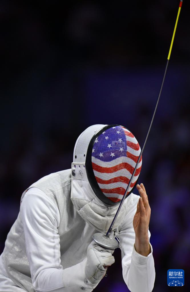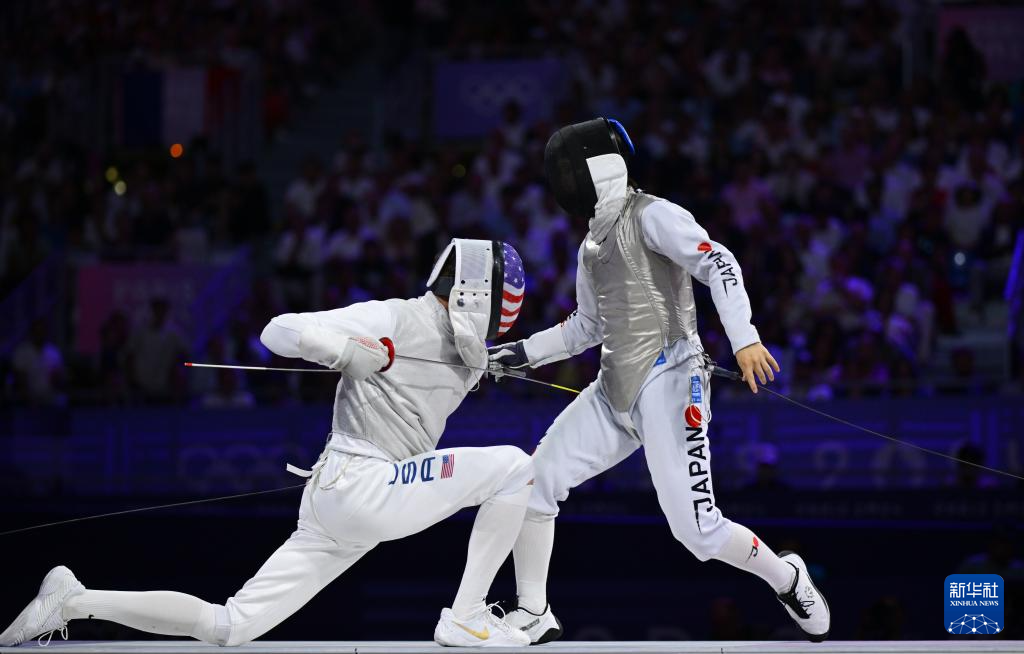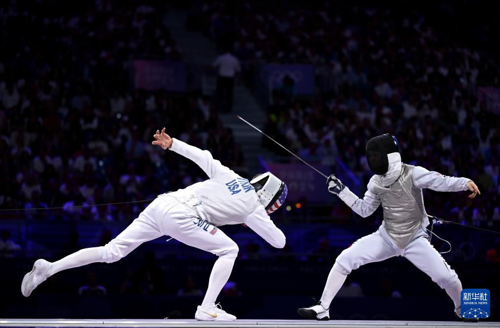 当日,巴黎奥运会击剑项目男子个人花剑铜牌赛在巴黎大皇宫举行,美国选手伊特金15比12战胜日本选手饭村一辉,获得季军。