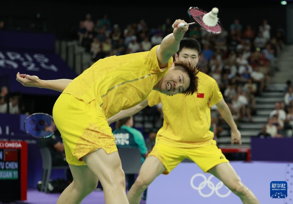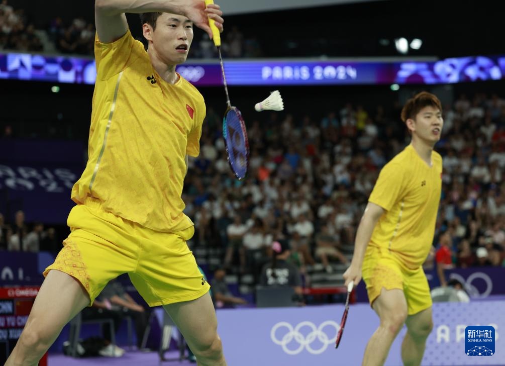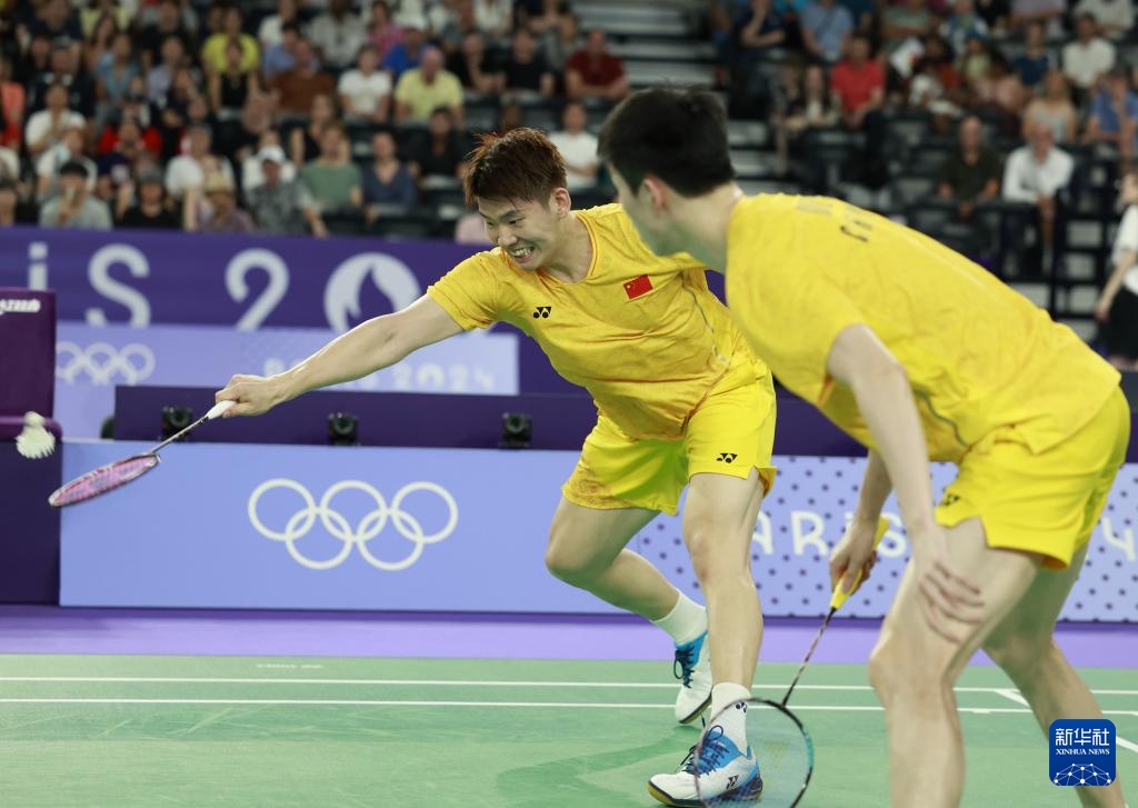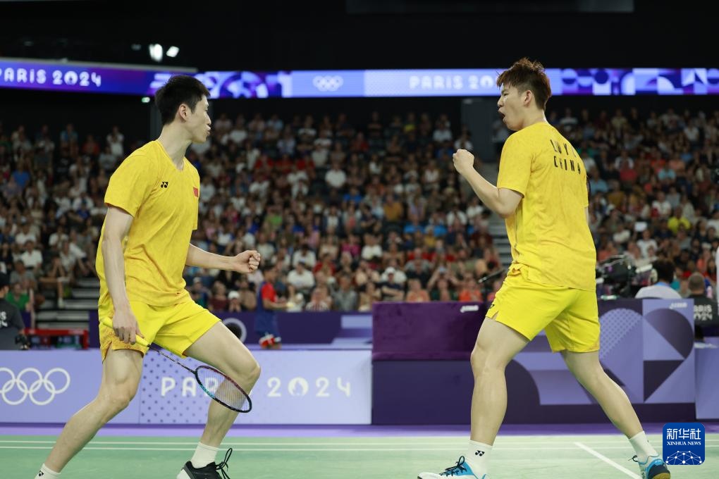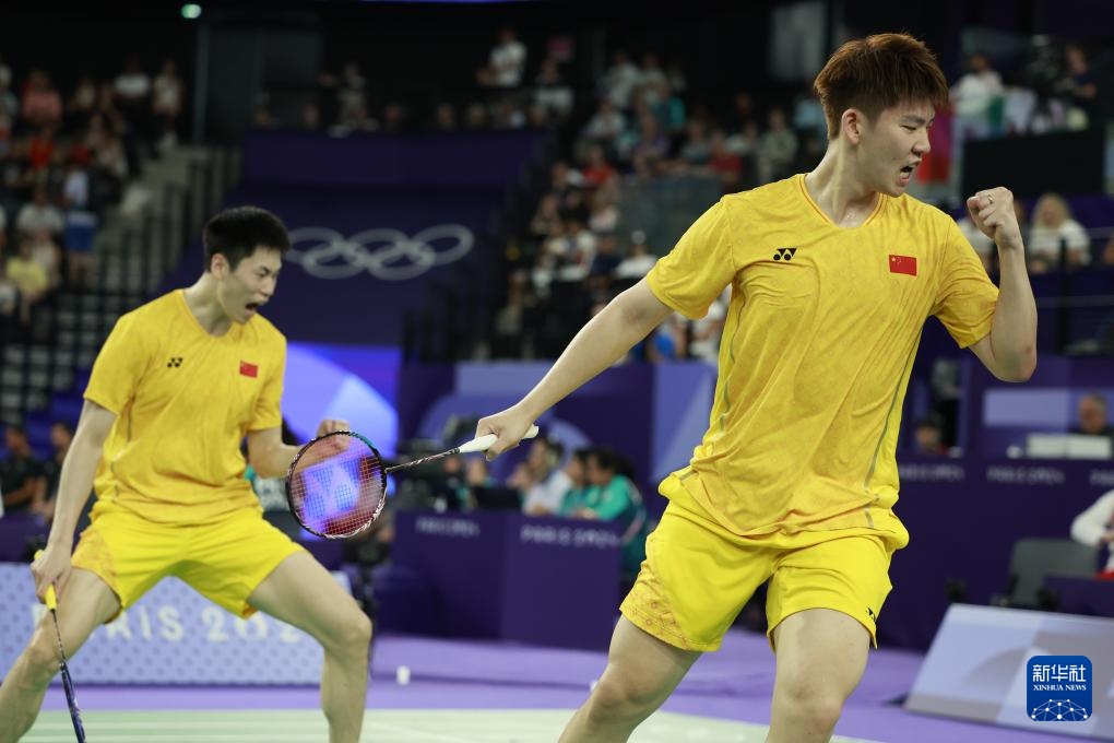 7月30日,在巴黎奥运会羽毛球男子双打小组赛D组比赛中,中国组合刘雨辰/欧烜屹2比0战胜日本组合保木卓朗/小林优吾。