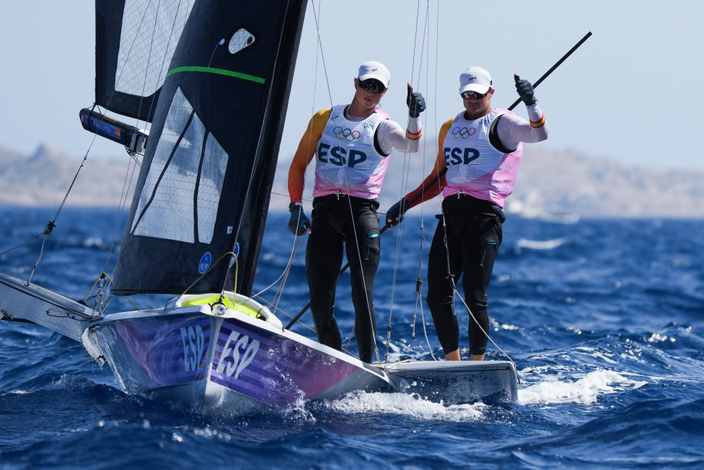 在男子49人级中,西班牙组合博汀/特里特尔九轮过后排名第一,爱尔兰的迪克森/沃迪洛夫紧随其后,中国选手温在鼎/刘添排在第13位。女子49人FX级中,荷兰组合范安霍尔特/杜茨和东道主选手斯泰亚特/皮孔分别排名前两位,中国组合胡晓宇/单梦缘暂列第20位。