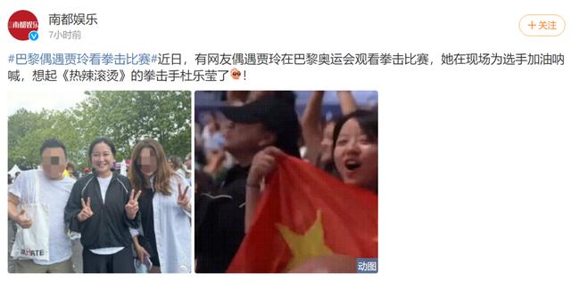 当地时间7月31日,演员贾玲现身巴黎奥运会拳击比赛看台,为参加比赛的中国选手加油。看台上的她为选手助威呐喊,蹦蹦跳跳地打call。