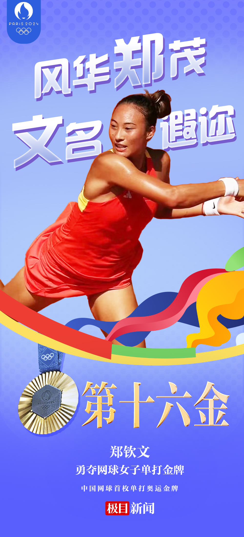 这是中国网球在奥运会上的首枚单打金牌,21岁的湖北姑娘郑钦文,创造了历史。