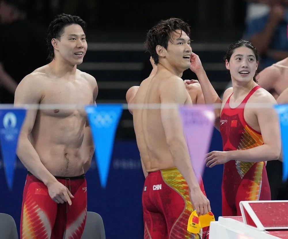 结果出来后,4位中国队选手在泳池边相互鼓励,微笑面对。在社交平台上,“中国队男女4×100米混合泳接力银牌”的话题也登上热搜第一,网友纷纷表示,“离冠军毫厘之差!这银牌含金量了得!”