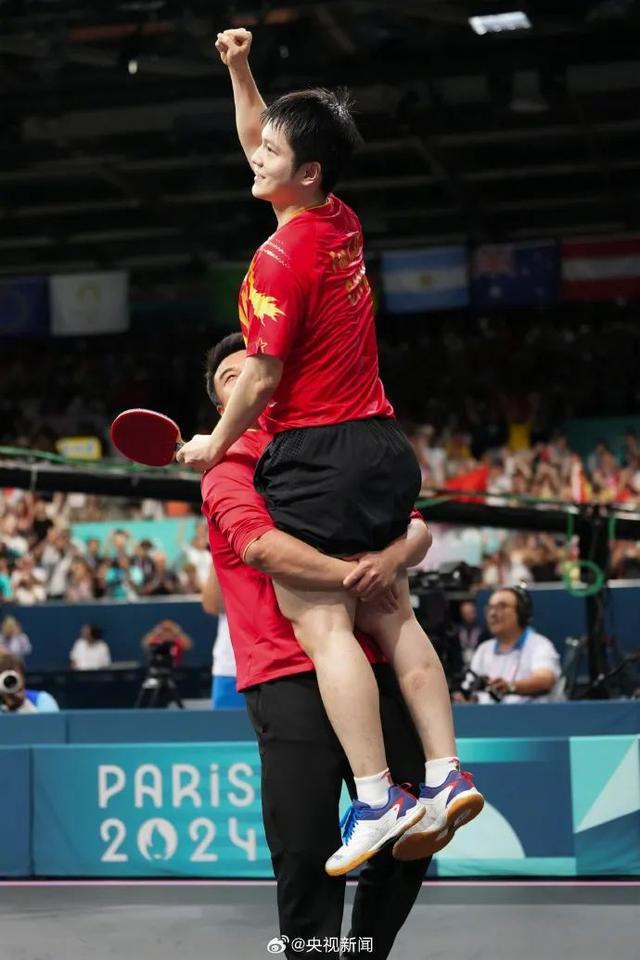 “冠军抱”“举高高”!樊振东教练王皓上演“组合拳”庆祝动作!