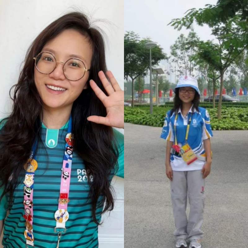 戴黛成为巴黎奥运会志愿者(左),2008年北京奥运会期间,她也曾参与志愿服务(右)(受访者供图)