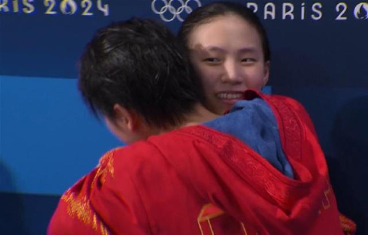 两人巴黎夺金后,紧紧相拥(图源:央视)