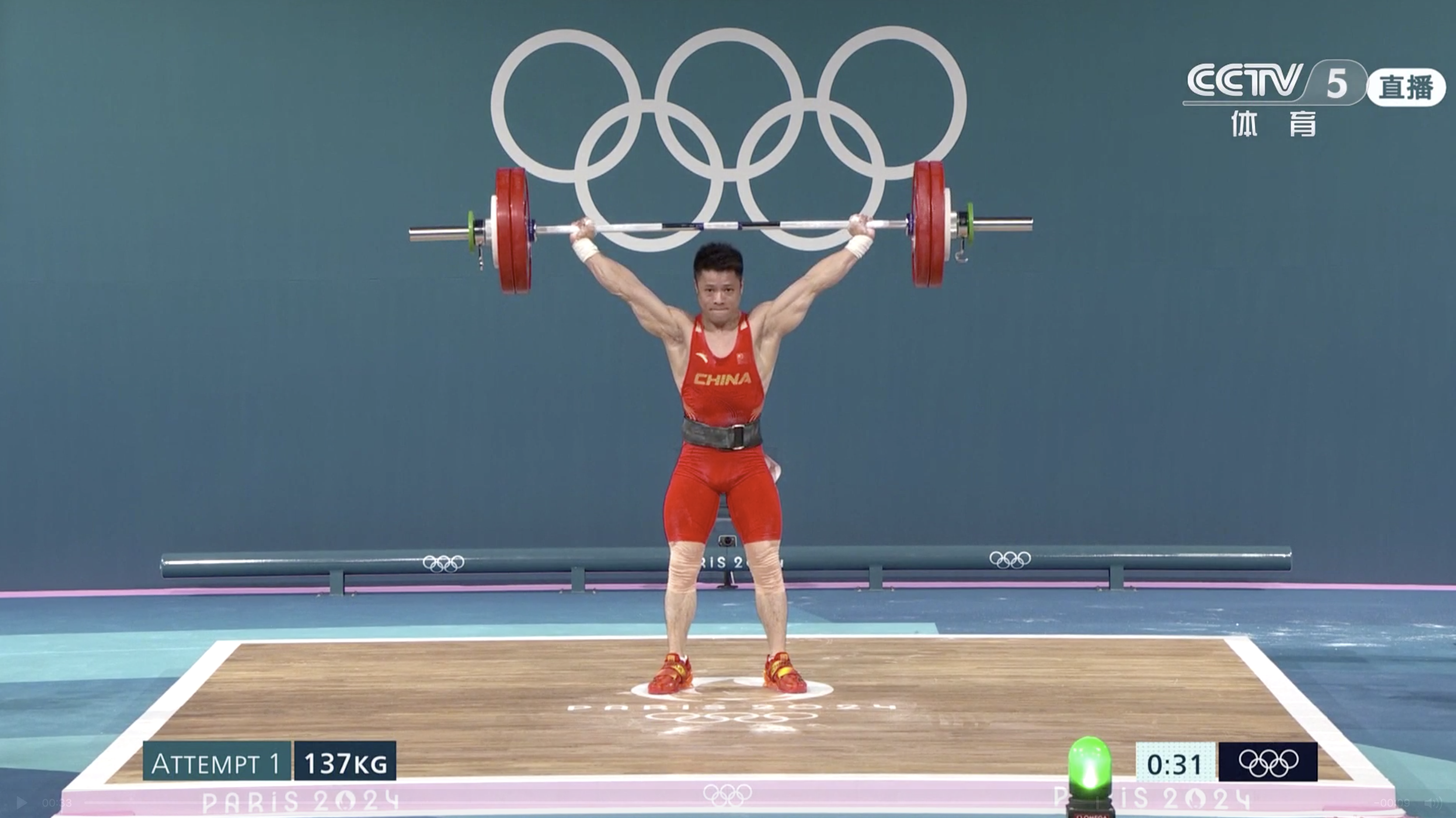 在抓举中,他以143kg创造了新的奥运会纪录!