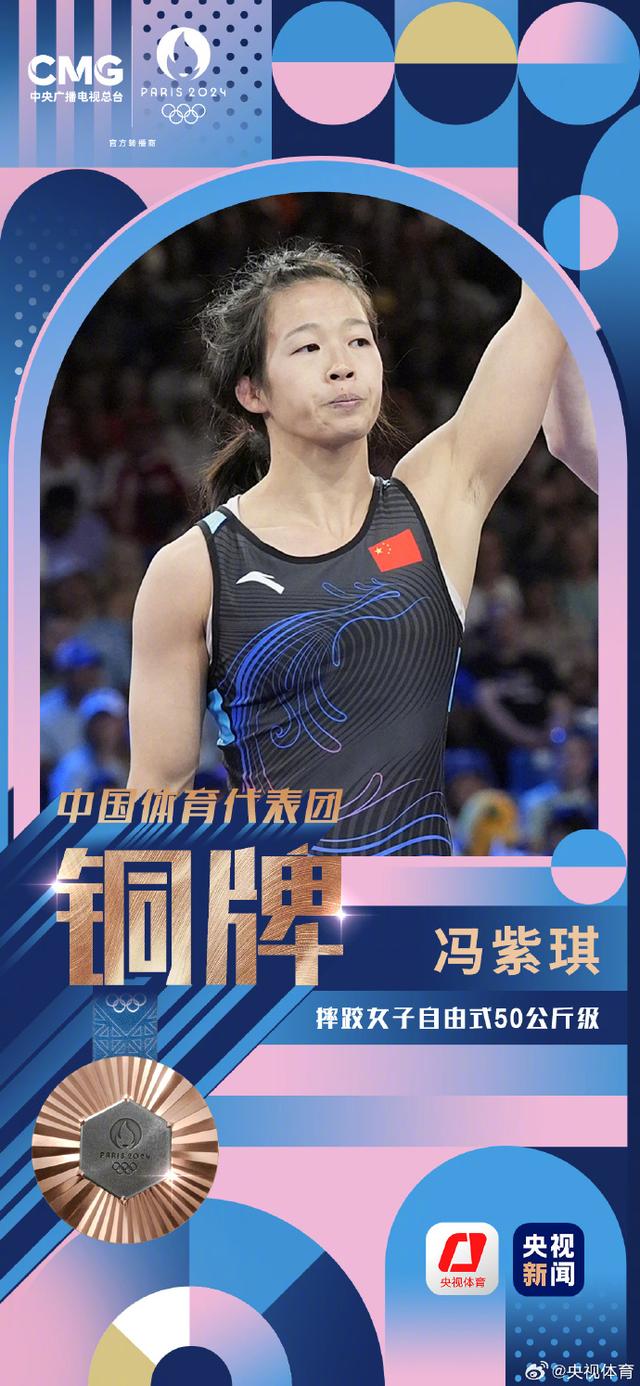 女子自由式50公斤级铜牌赛,冯紫琪击败蒙古选手,获得铜牌。