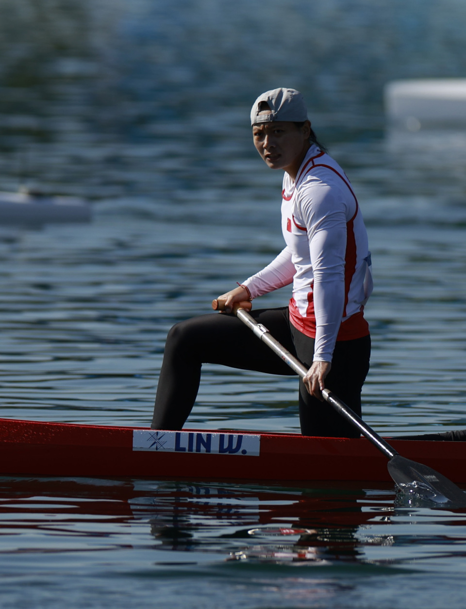 8月8日,中国选手林文君在皮划艇静水女子单人划艇200米预赛中。新华社记者 沈伯韩 摄