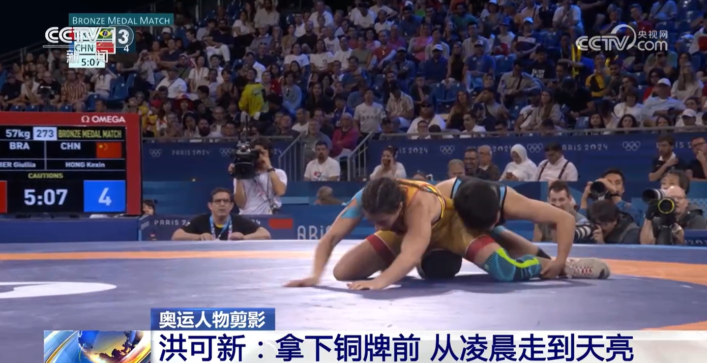 也许是这漫长的内省让她找回了自己,铜牌争夺战上,洪可新像换了个人。面对巴西选手佩纳尔贝,她率先发力,不断冲抱对方腿部,迅速下分。地面缠斗中,洪可新没有给对方任何反扑机会,10:0一鼓作气,拿下比赛,为中国摔跤队赢得本届奥运会上第五枚奖牌。一天之内,她换了新颜。