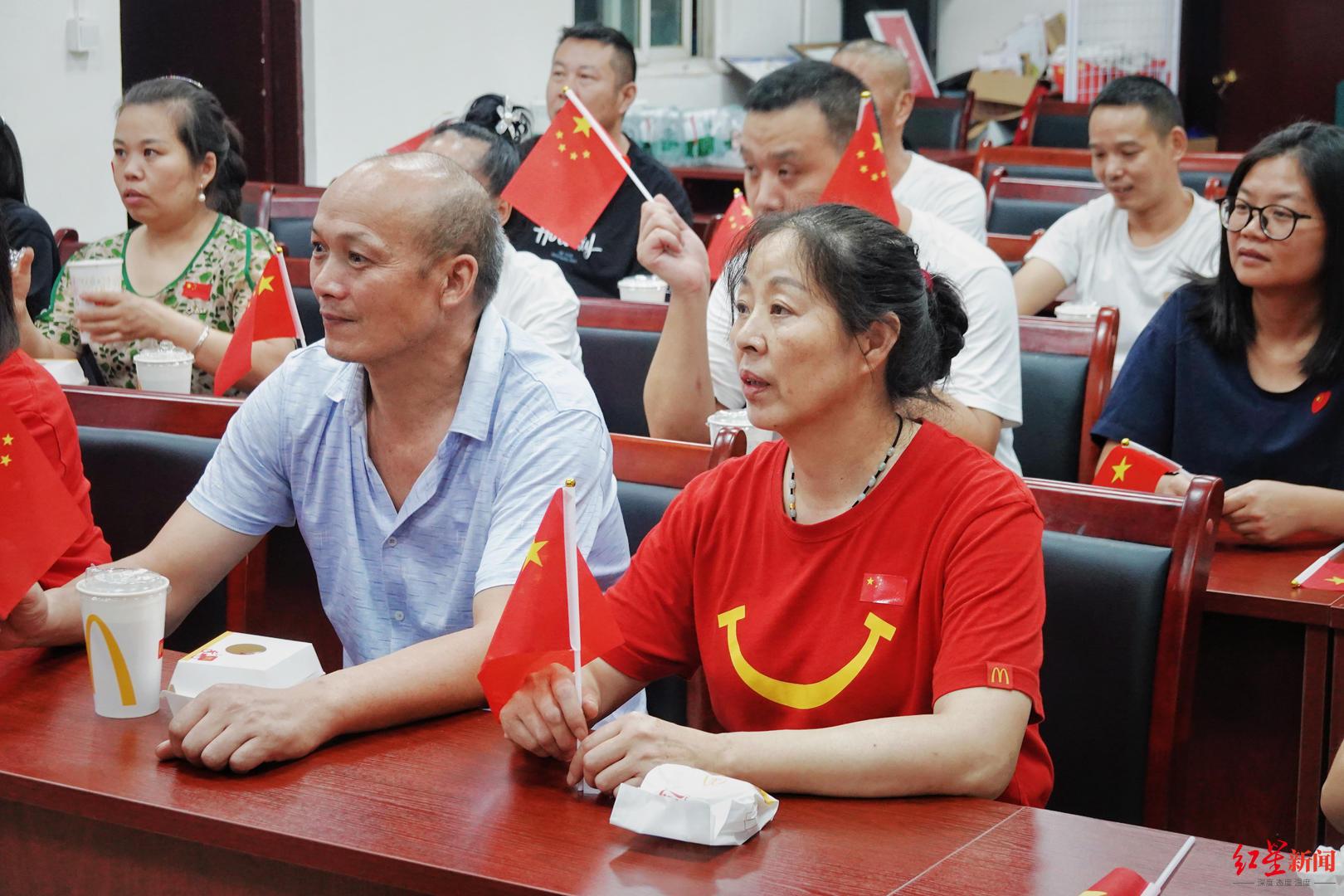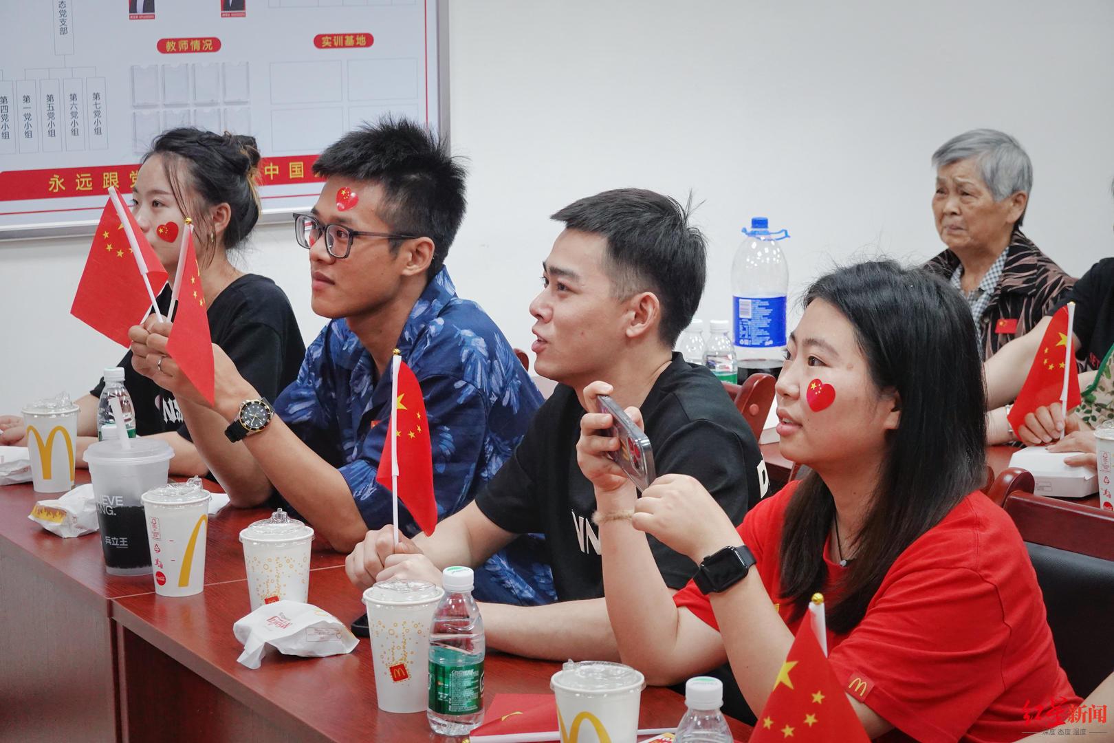 叶娇的家人、亲朋好友、邻里一起观看比赛