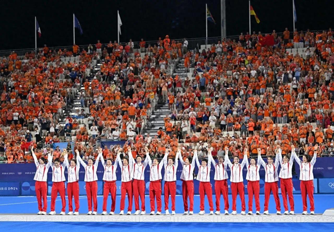 这是中国女子曲棍球队在2008年北京奥运会后,时隔16年再度摘得奥运会银牌,面对世界排名第一的荷兰队,中国女曲姑娘们毫无畏惧,敢打敢拼,展示了中国队努力拼搏、坚强不屈、战斗到底的精神。