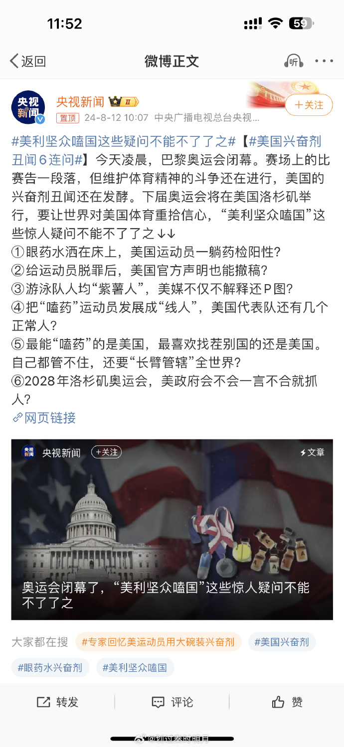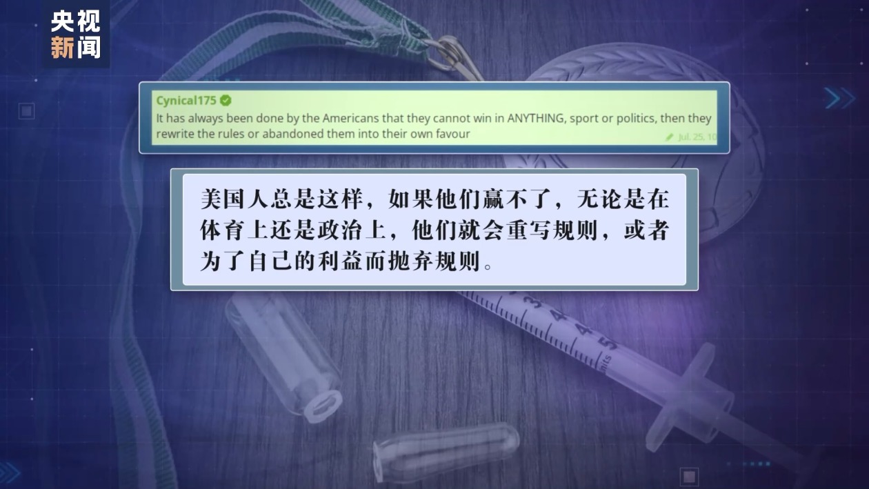 法国体育医师 让·皮埃尔·德蒙德纳德:美国那时发明了合成代谢类固醇,在美国的训练中心,更衣室里有一个大碗,里面都是五颜六色的药丸,他们吃一大把。为什么在投掷项目、在田径比赛中,美国人占据世界统治性地位?这是因为他们都在服用合成代谢类固醇。1988年,卡尔·刘易斯在汉城奥运会前被检测出阳性三次,但没有受到处罚,他给出了借口,说是“无意中服用了这个产品”。美国人掩盖了这件事,这样的情况很常见。·“西方国家质疑非西方国家运动员暴露其偏见”
