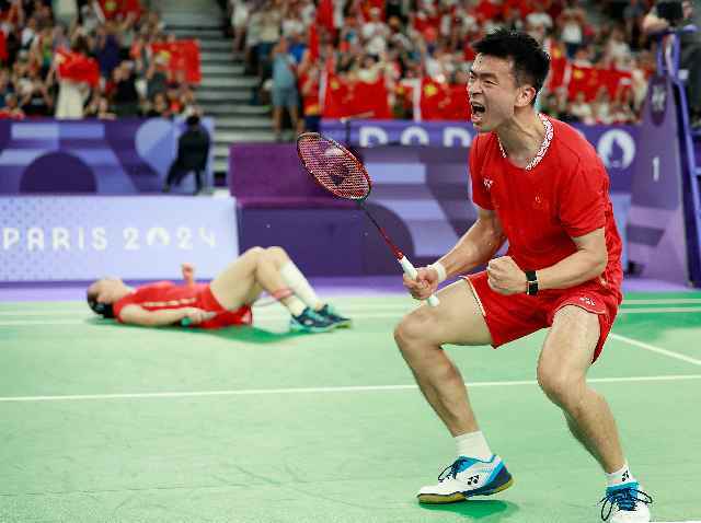 8月2日,郑思维(右)黄雅琼在夺冠后庆祝。新华社记者 任正来 摄