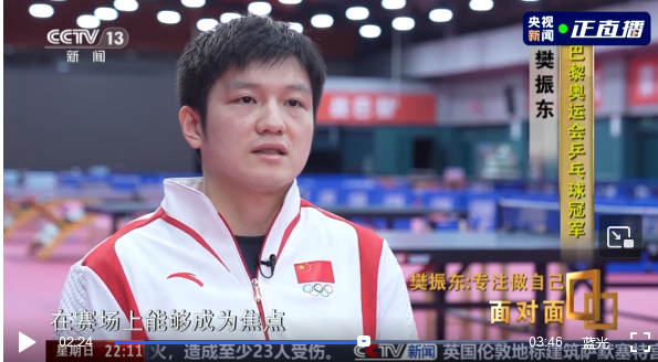樊振东在采访中说,其实很后怕,“现在回头想,包括开会总结的时候,其实是有一些后怕的,因为前八里面就剩我一个中国运动员了。很多纪录,或者说很多中国队的光荣历史是不是就要在自己手上葬送了。”