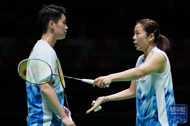 ↑贾一凡/李汶妹(左)在比赛中交流。