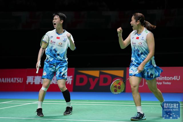 ↑贾一凡/李汶妹(左)在比赛中庆祝得分。