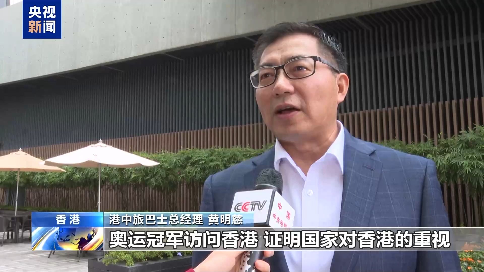 港中旅巴士总经理黄明慈:奥运冠军访问香港,证明国家对香港的重视,给香港下一步运动的氛围带来更大的促进作用。这次国家运动员在巴黎奥运会上取得这么好的成绩,我作为一个中国人感到很自豪和骄傲。