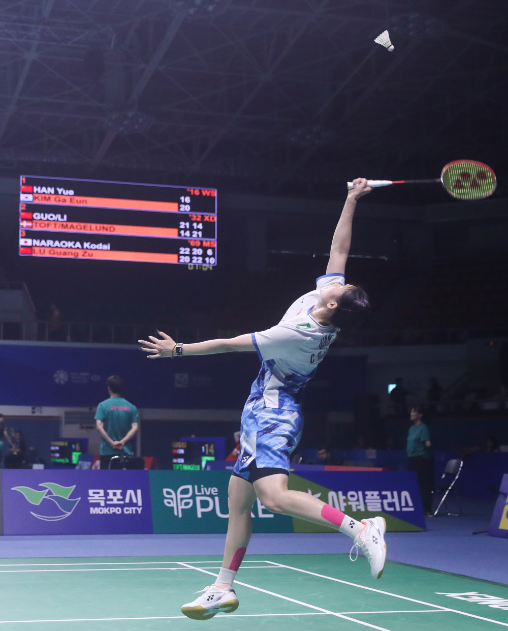 当日,在韩国木浦市举行的2024年韩国羽毛球公开赛女单四分之一决赛中,中国选手韩悦1比2不敌韩国选手金佳恩,无缘半决赛。