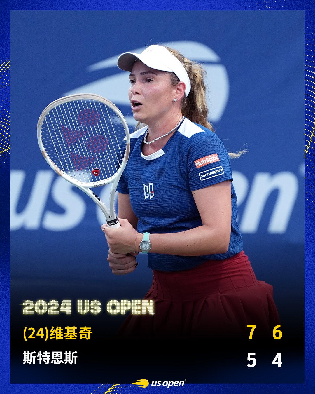 较晚结束的比赛中,赛会24号种子维基奇7-5/6-4击败本土选手斯特恩斯,时隔五年,再度挺进美网16强。