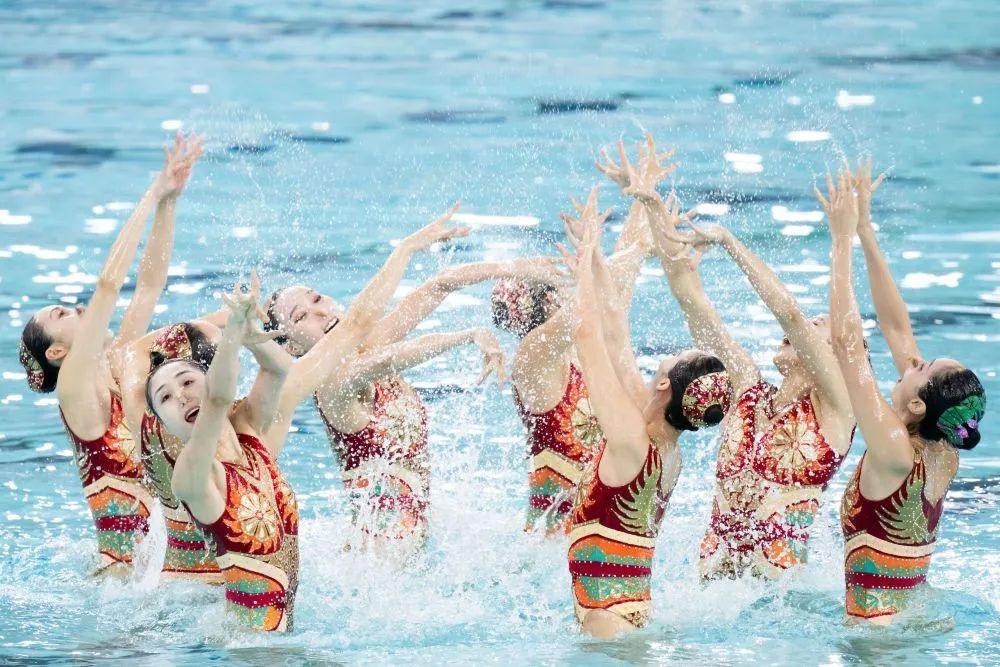 △ 8月31日,花样游泳队选手进行表演。新华社记者 朱炜 摄
