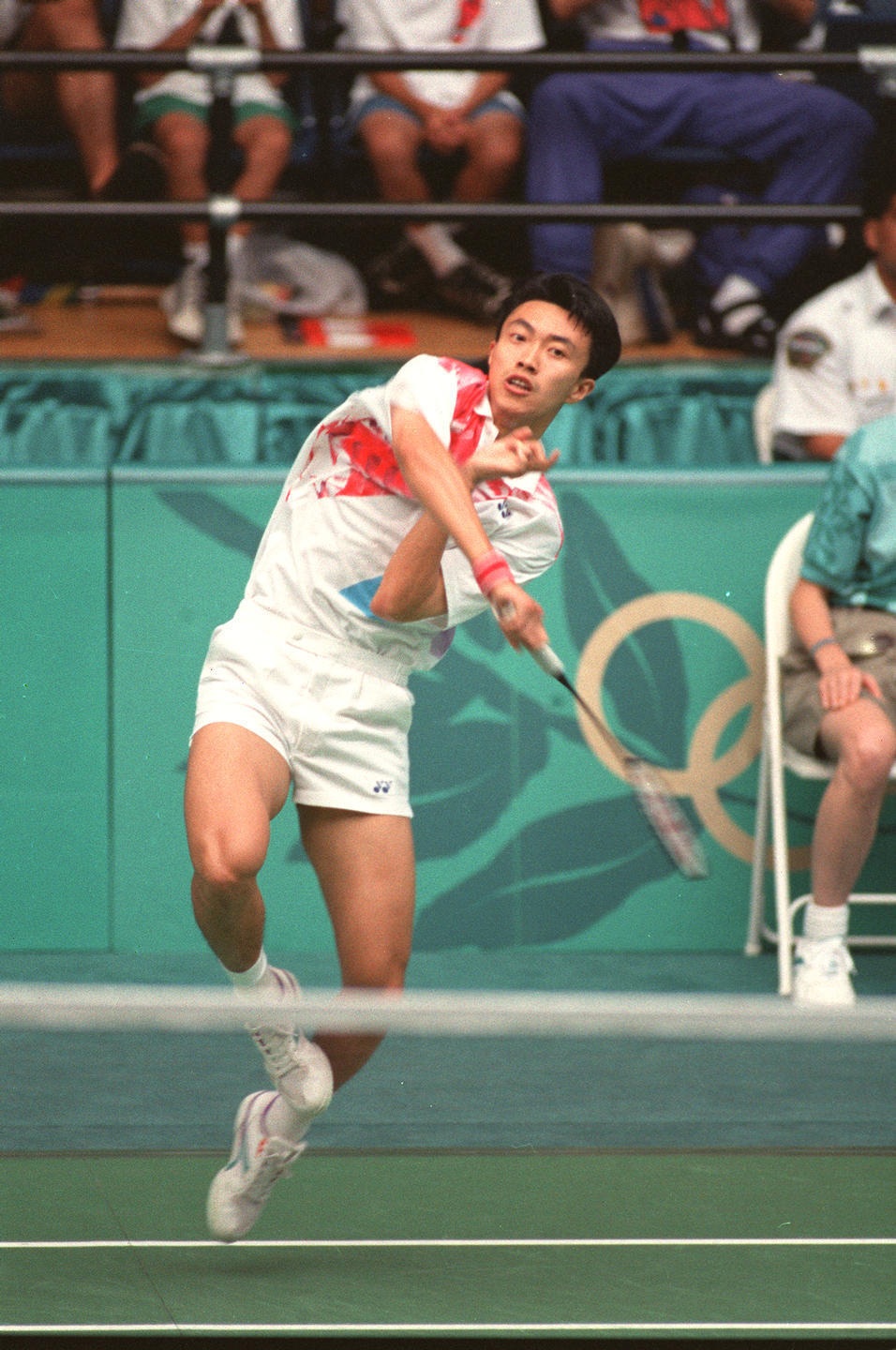 1996年8月1日,在亚特兰大奥运会羽毛球男单决赛中,中国选手董炯以0比2负于丹麦选手拉尔森,获得银牌。这是董炯在比赛中。新华社记者 张燕辉 摄