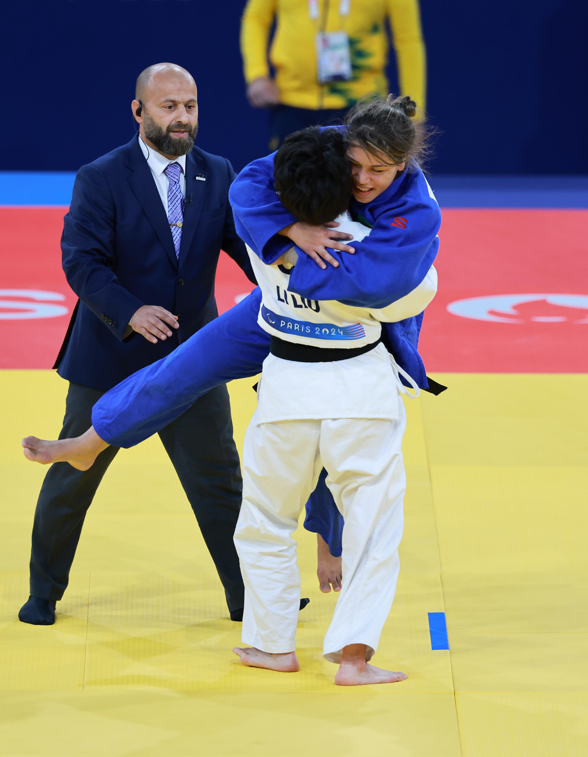 当日,在巴黎残奥会盲人柔道女子70公斤J1级决赛中,中国选手刘立1比0战胜巴西选手德弗雷塔斯,获得金牌。