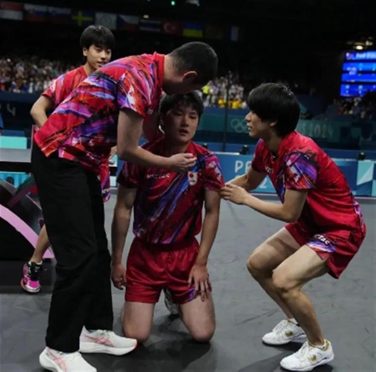 北京时间8月8日凌晨,乒乓球男团半决赛,日本队在大比分2-0,决胜盘张本智和2-0领先的情况下遭遇大逆转,以2-3负于瑞典队,无缘决赛。赛后,没能力挽狂澜的张本智和跪地不起,队友上前安慰。相关话题冲上热搜。