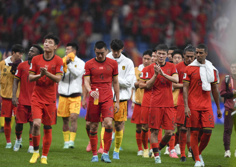 9月10日,中国队在比赛后。 当日,在大连举行的2026年国际足联世界杯亚洲区预选赛18强赛C组第二轮比赛中,中国队主场1比2不敌沙特队。 新华社记者 李钢 摄
