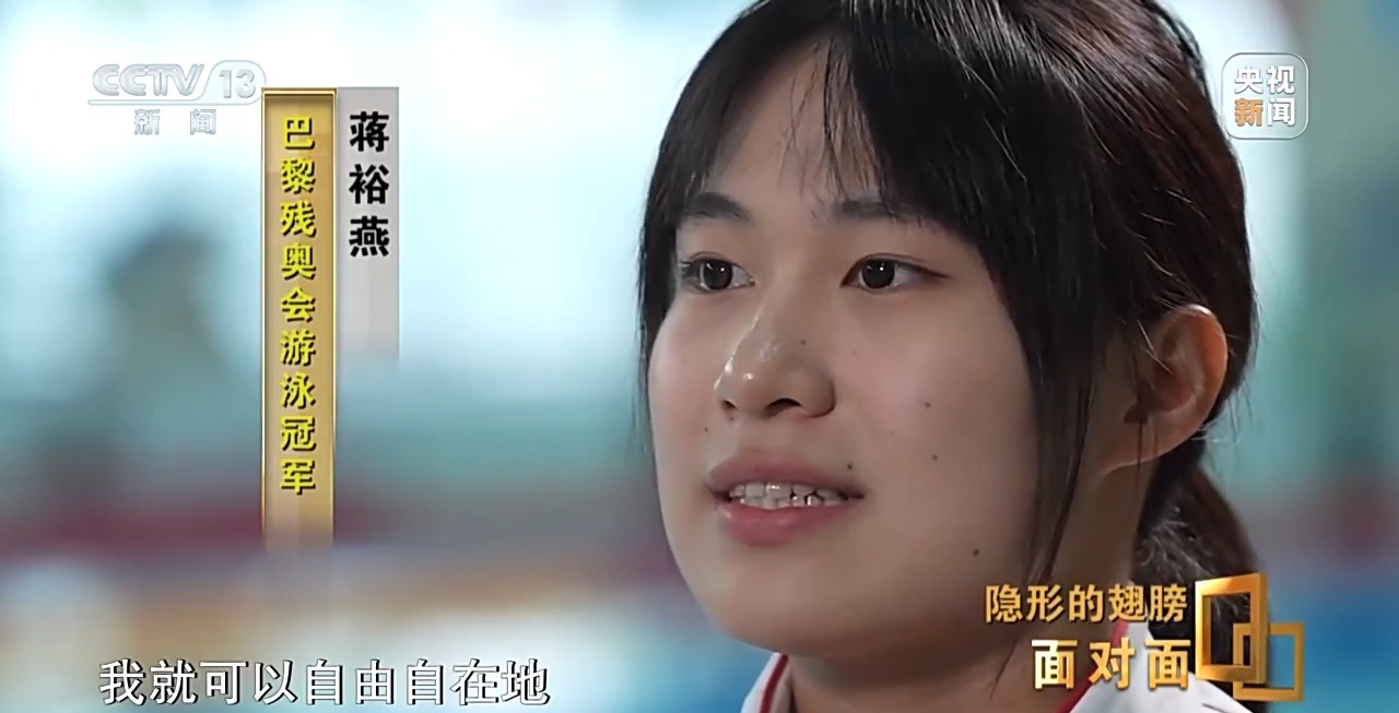 蒋裕燕:我打心里觉得这就是我身体的一部分,我没有什么好去掩盖它的,不管是好的坏的,这都是我。既然车祸让我失去了右臂和右腿,但是也让我在泳池找到了新的人生目标,我觉得这些都是有意义的。