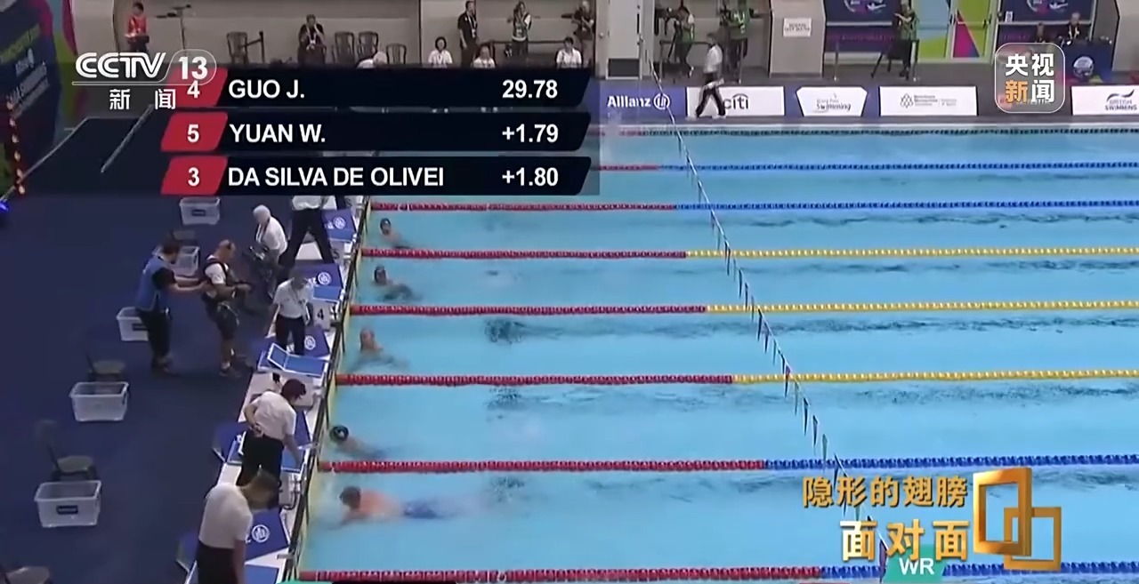 郭金城:我一直把这当成一个目标,希望退役之前,能游进三十秒以内。到2021年全运会的时候,其实我已经有点放弃了。训练的时候我其实都不想下水,站在上面要等很久,说服自己去下水。因为不管怎么样都很难游进去,感觉真的有东西在挡着前进之路。