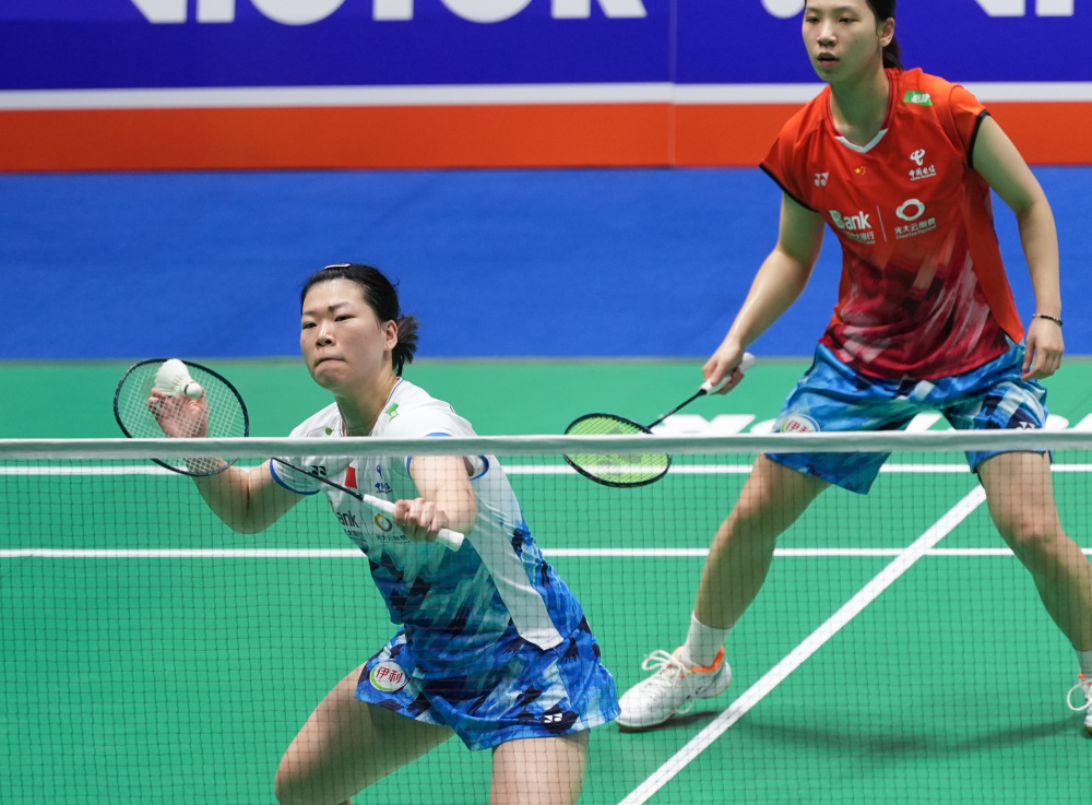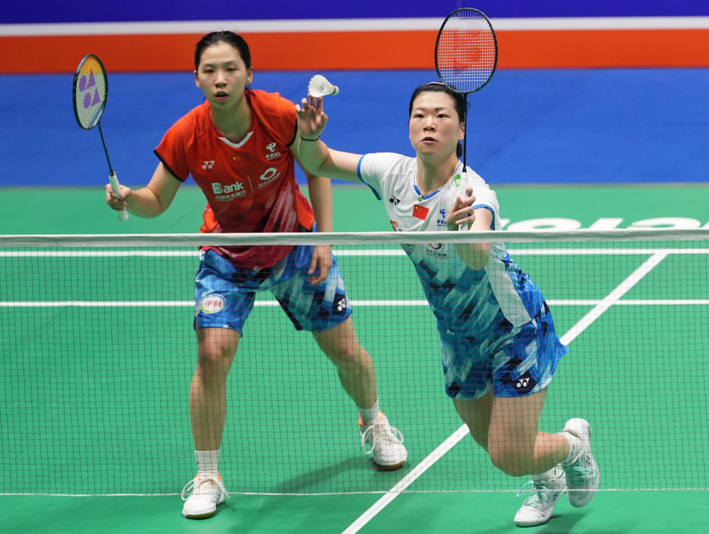当日,在江苏省常州市举行的2024中国羽毛球公开赛女双四分之一决赛中,中国组合李怡婧/罗徐敏2比1战胜另一对中国组合刘圣书/谭宁,晋级四强。