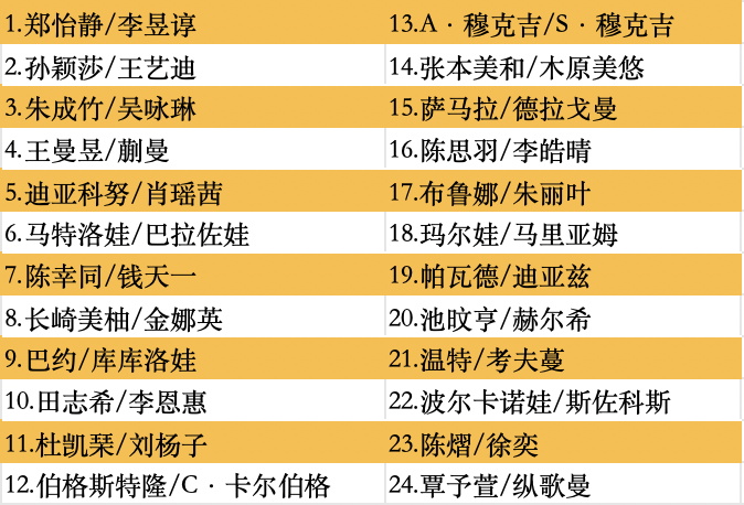 女子双打正赛名单如下: