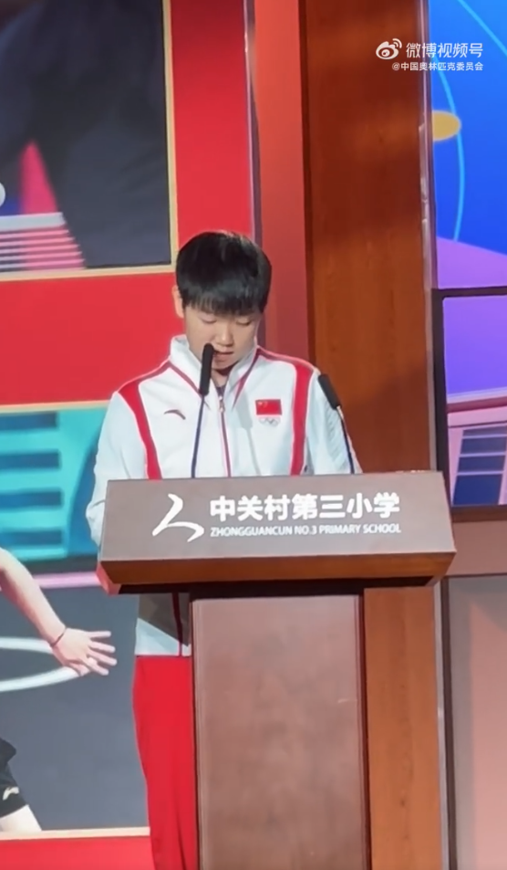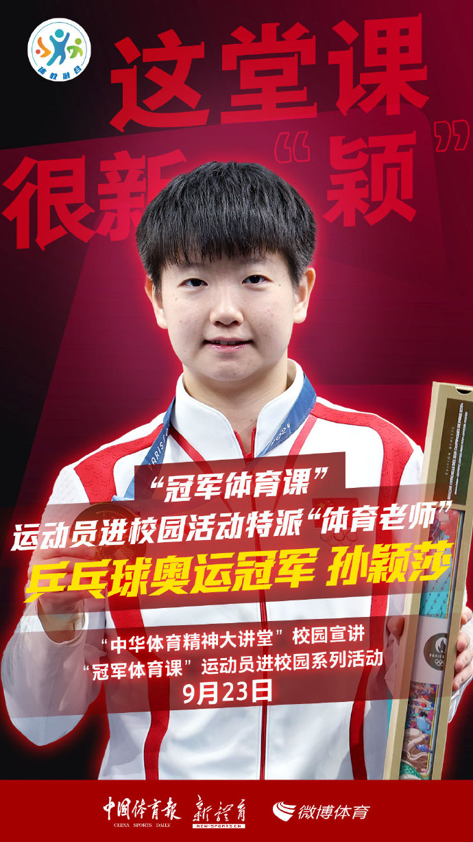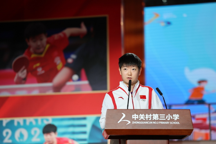 北京时间9月23日,巴黎奥运会乒乓球混双冠军孙颖莎正在参加“中华体育精神大讲堂”校园宣讲、“冠军体育课”运动员进校园系列活动。在演讲过程中,孙颖莎提到自己是因为受北京奥运会的影响而种下了梦想的种子。