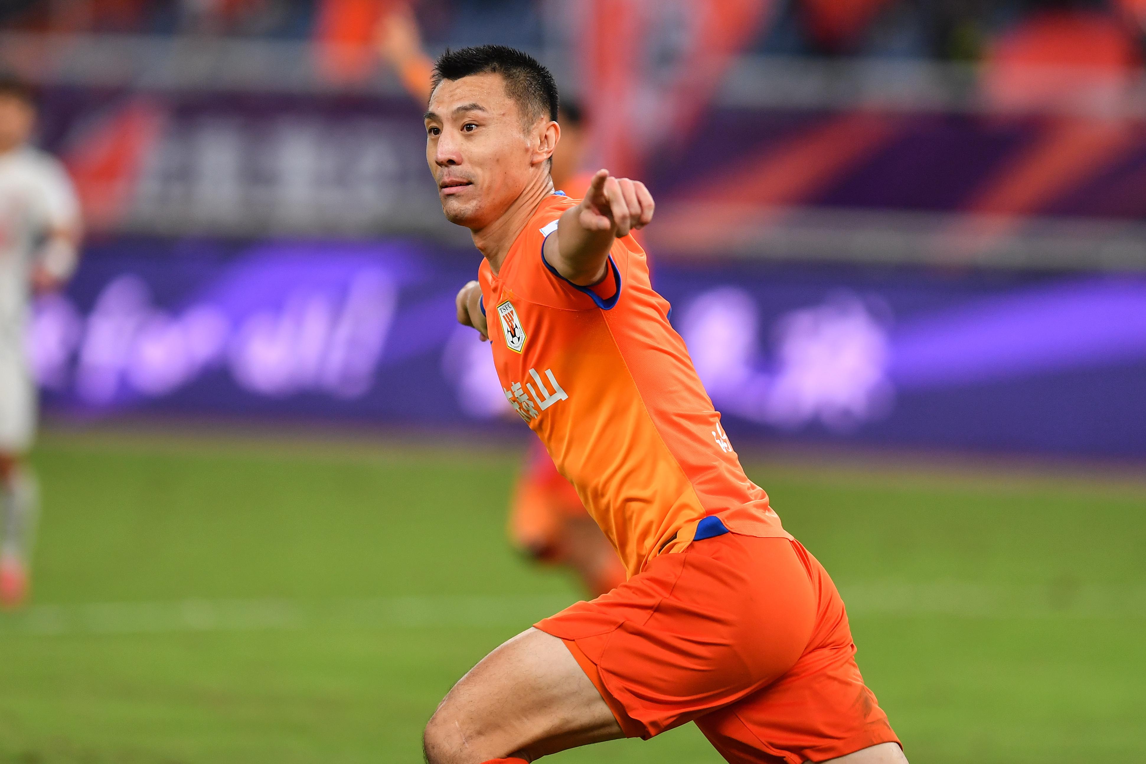 9月24日,山东泰山队球员郑铮在比赛中庆祝进球。 新华社记者 朱峥 摄