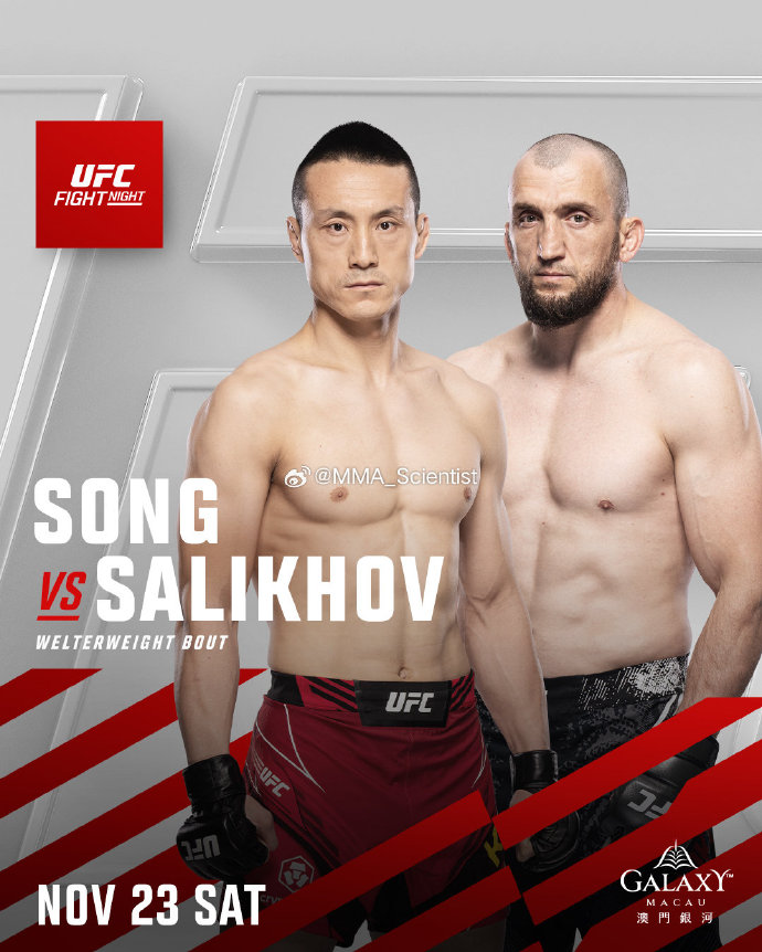 被称为“玉面刺客”的宋克南,将出战在中国拥有大量粉丝的“功夫之王”穆斯里穆·萨利科夫。 2017年,宋克南曾在格斗之夜上海站的比赛中仅耗时15秒TKO获胜,创造了中国选手在UFC赛场上的最快KO纪录;在上月刚结束的UFC305数字赛中,宋克南以一场点胜证明自己目前状态正热。此次澳门站的对手穆斯里穆在中国出道、成名,曾被视为“中国散打最强外敌”,2017年转型为综合格斗选手,同年带着13胜1负的战绩在上海开启UFC生涯。这场次重量级对决将是一场散打佼佼者的直面。