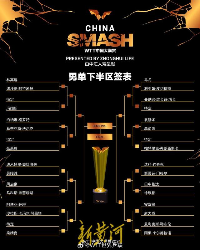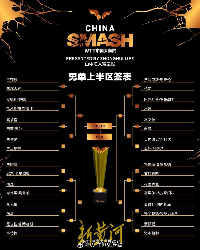 男单头号种子王楚钦所在的上半区竞争激烈,国乒名将面临巨大挑战。