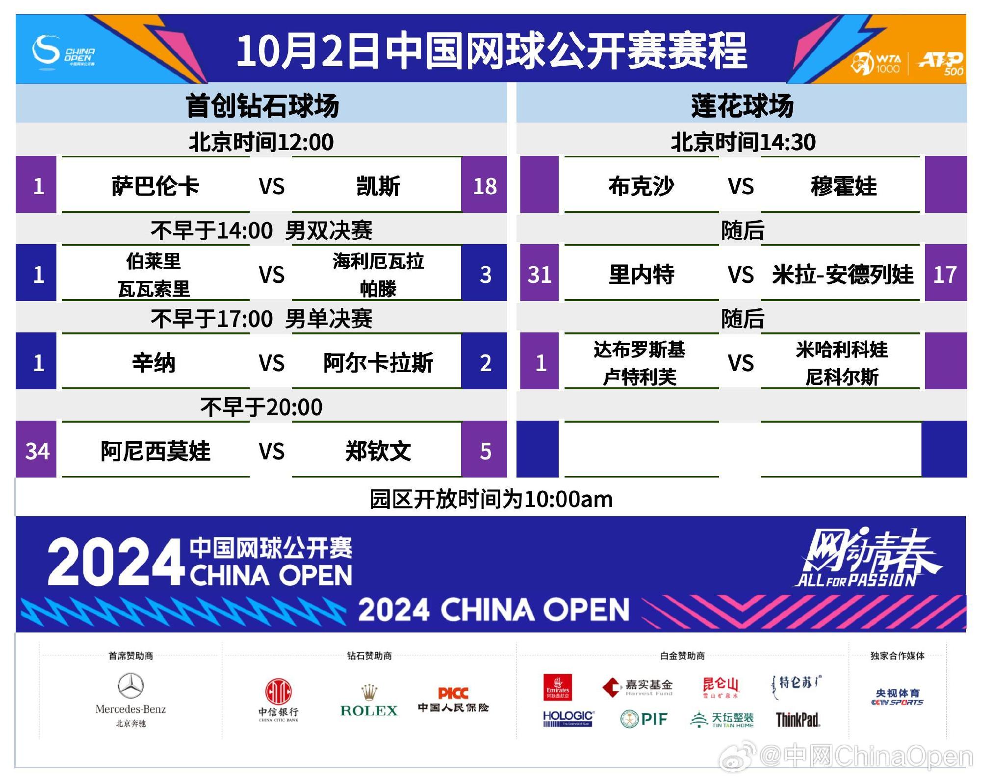 极目新闻综合@央视体育、@WTA国际女子网球协会、@中网ChinaOpen、新华社