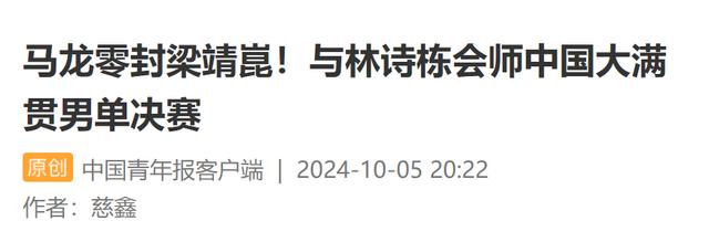 在昨晚结束的一场WTT世界乒联中国大满贯男单半决赛上,中国队老将马龙直落四局战胜了昨天下午夺得本次比赛男双冠军的队友梁靖崑,与小将林诗栋在男单决赛会师。