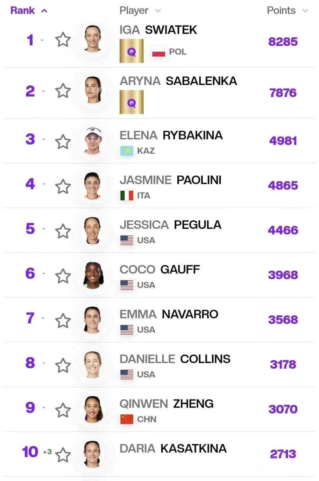 △图/WTA官网,截至2024年9月26日