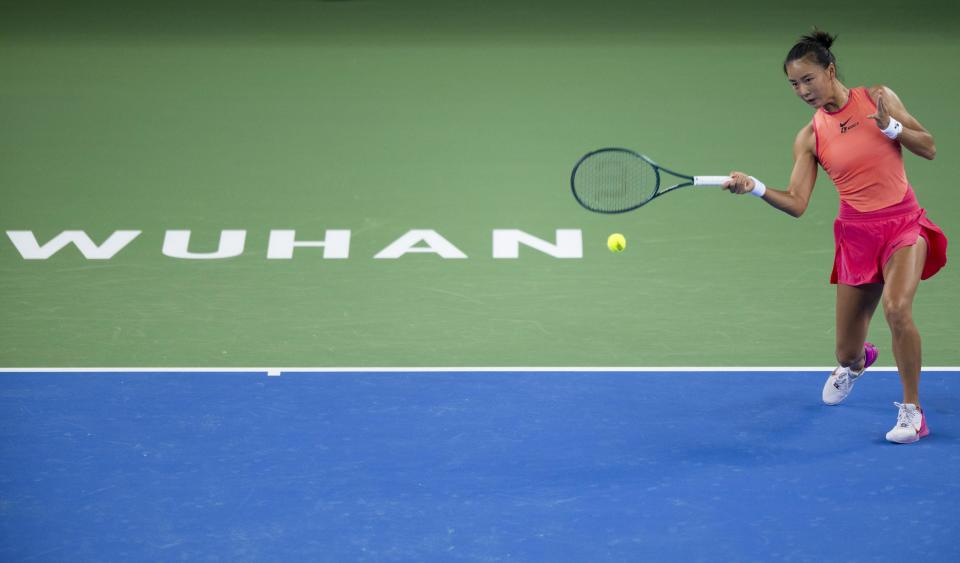 10月7日,袁悦在比赛中回球。新华社记者 伍志尊 摄