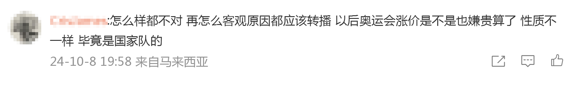也有观众表示,不转播的行为某种程度上代表了被“抛弃”,毕竟是国家队,还是应该支持。