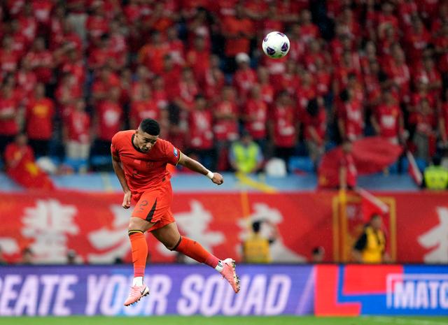 2024年9月10日,中国队球员蒋光太在与沙特队的世预赛比赛中头球。新华社记者 潘昱龙 摄其实