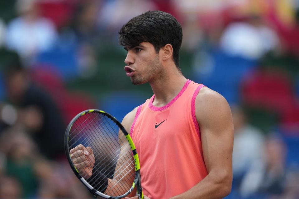 当日,在2024年ATP上海网球大师赛男单第四轮比赛中,西班牙选手阿尔卡拉斯2比0战胜法国选手孟菲尔斯,晋级八强。