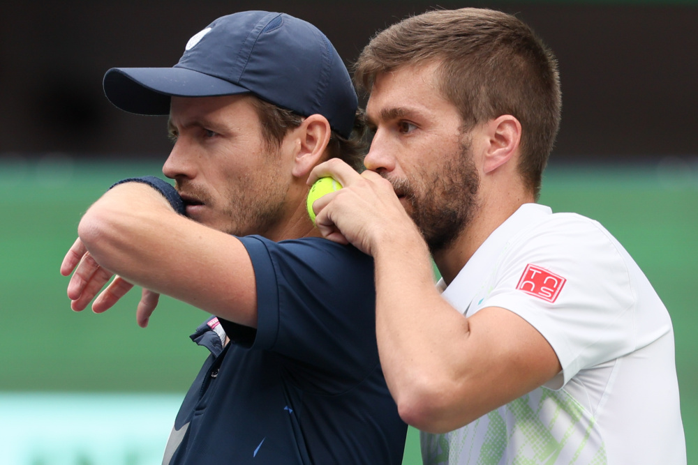 10月13日,库尔霍夫(左)/麦克蒂奇在比赛中。新华社记者 王翔 摄