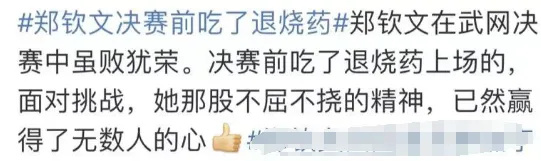 赛后的新闻发布会上,郑钦文谈到当天比赛的状态,她透露她是吃了退烧药上的决赛。相关话题也冲上热搜。