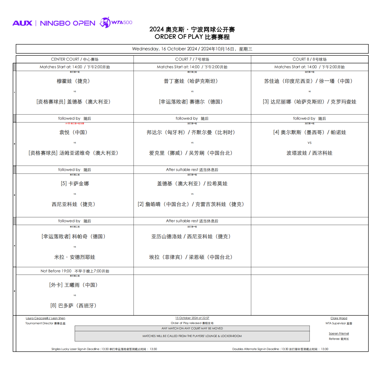 【新闻+】附10月16日对战签表: