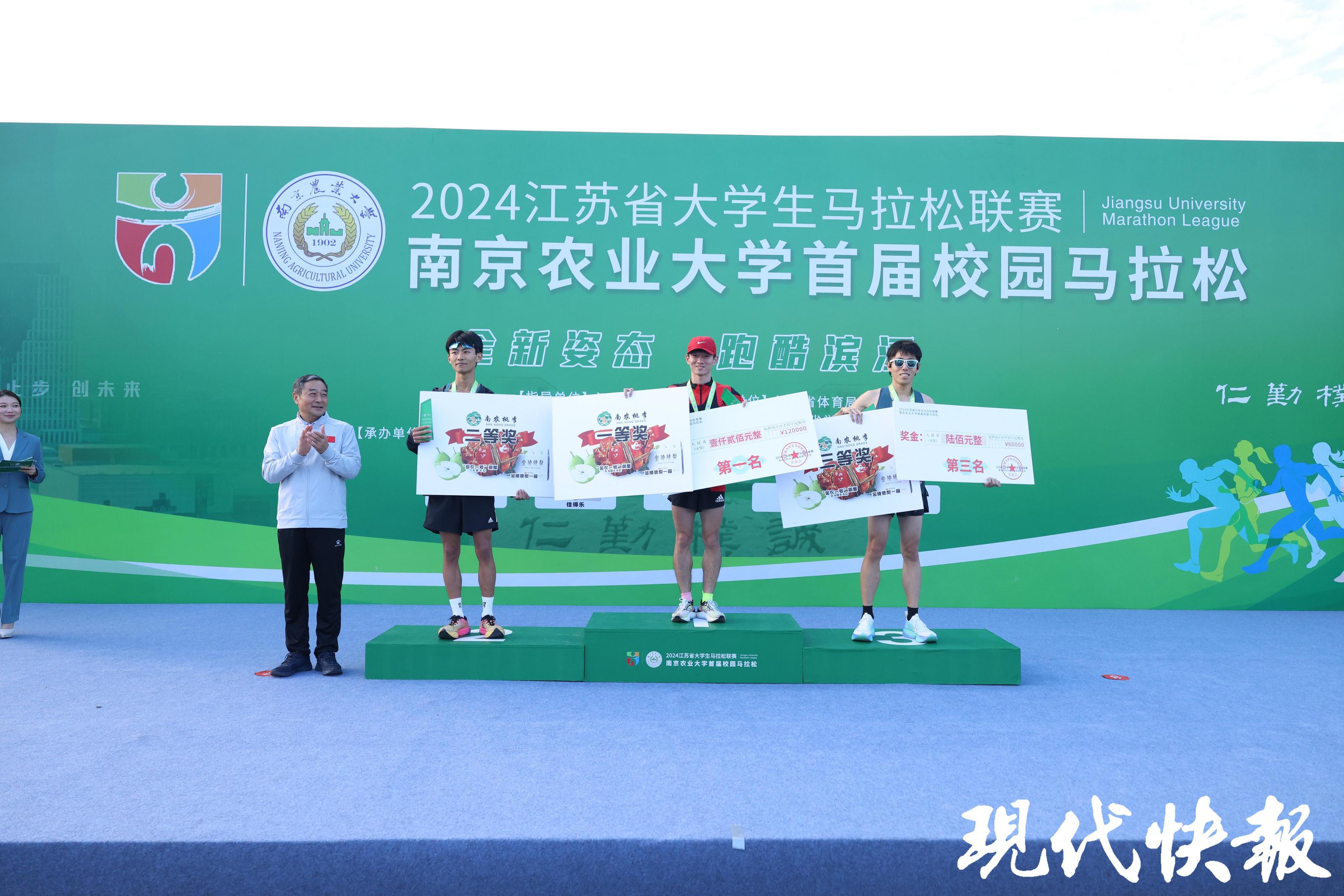 据介绍,南农大首届马拉松赛事组不仅为获胜者设置了奖牌和奖金,还送上了带有南农科技硬核的农产品“宁香粳9号”大米和“金农1号”大闸蟹,“农”味儿十足的心意让获胜者满载而归。