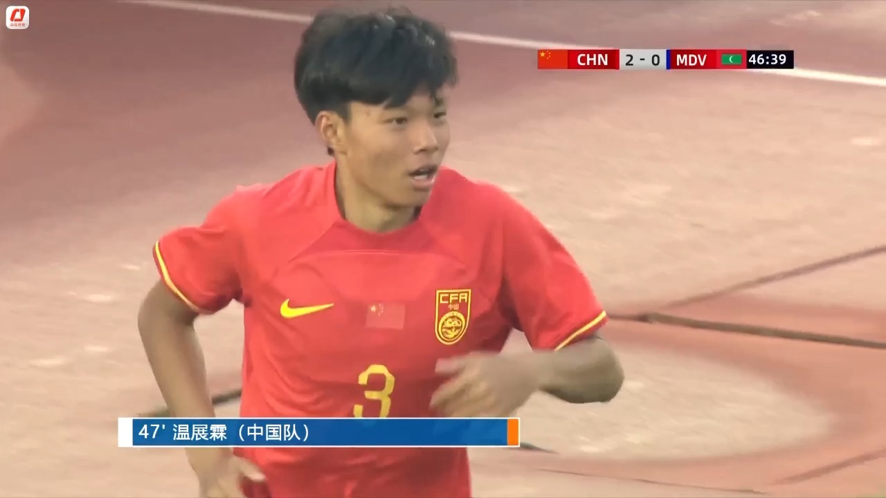 下半场刚开始,温展霖将比分扩大到3-0。持续进攻的中国队随后在3分钟时间里由张城瑞、布尼亚明·阿不都沙拉木和杨黔东打入3球。胜券在握的中国队攻势不减,替补登场的魏祥鑫连入2球,卞宇郎在第86分钟将最终比分定格在9-0。